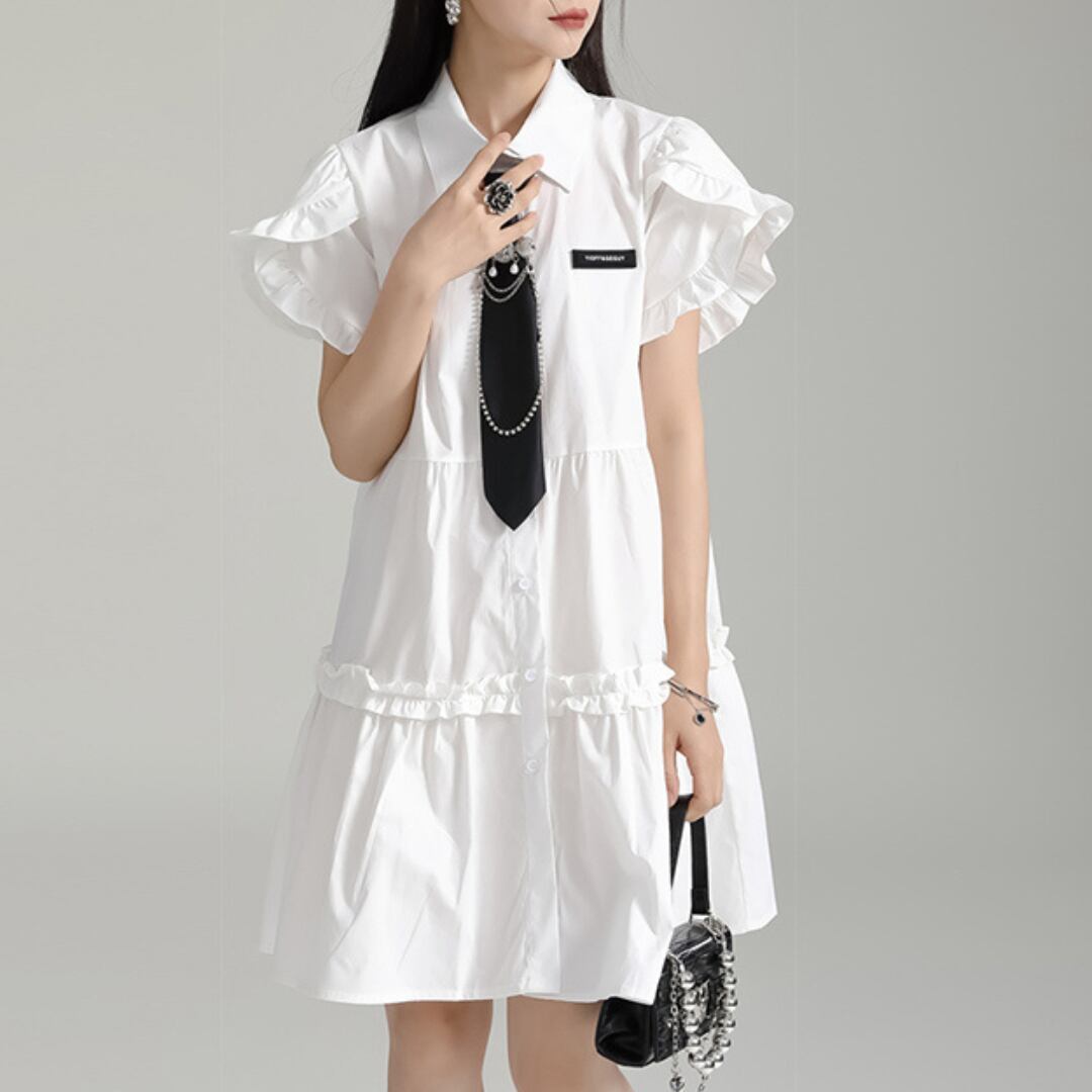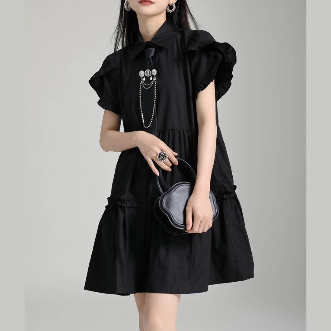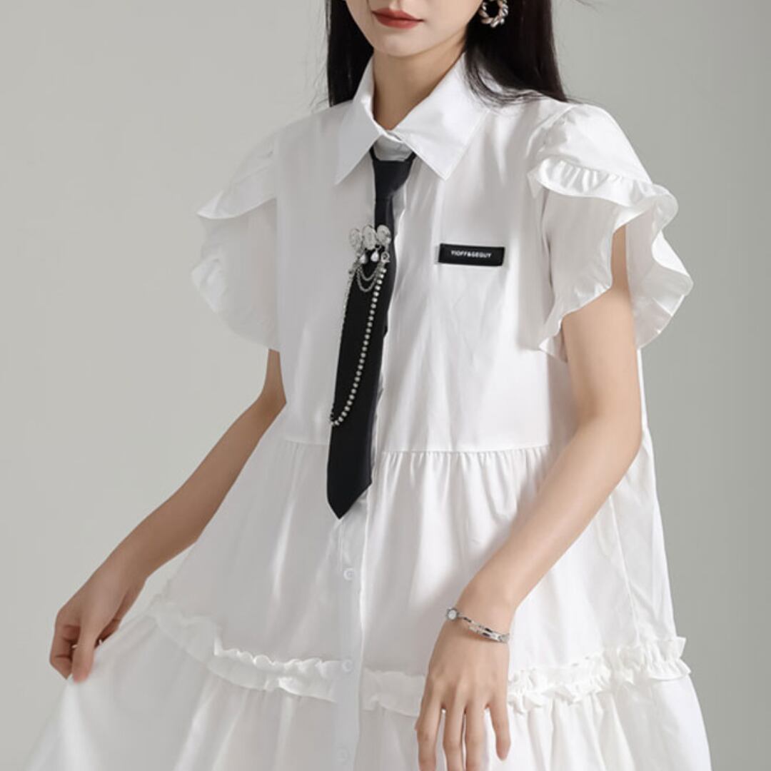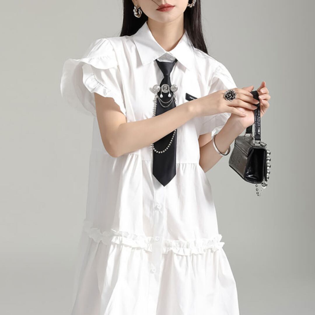 美しいベルスリーブが特徴のシャツドレス。ふんわりとしたベルスリーブが女性らしさを引き立て、柔らかな素材が心地よい着心地を提供します。カジュアルなランチや特別なデートシーンまで、幅広くご活用いただけます。このデザインで、あなたのスタイルを一層華やかに仕上げてみませんか?