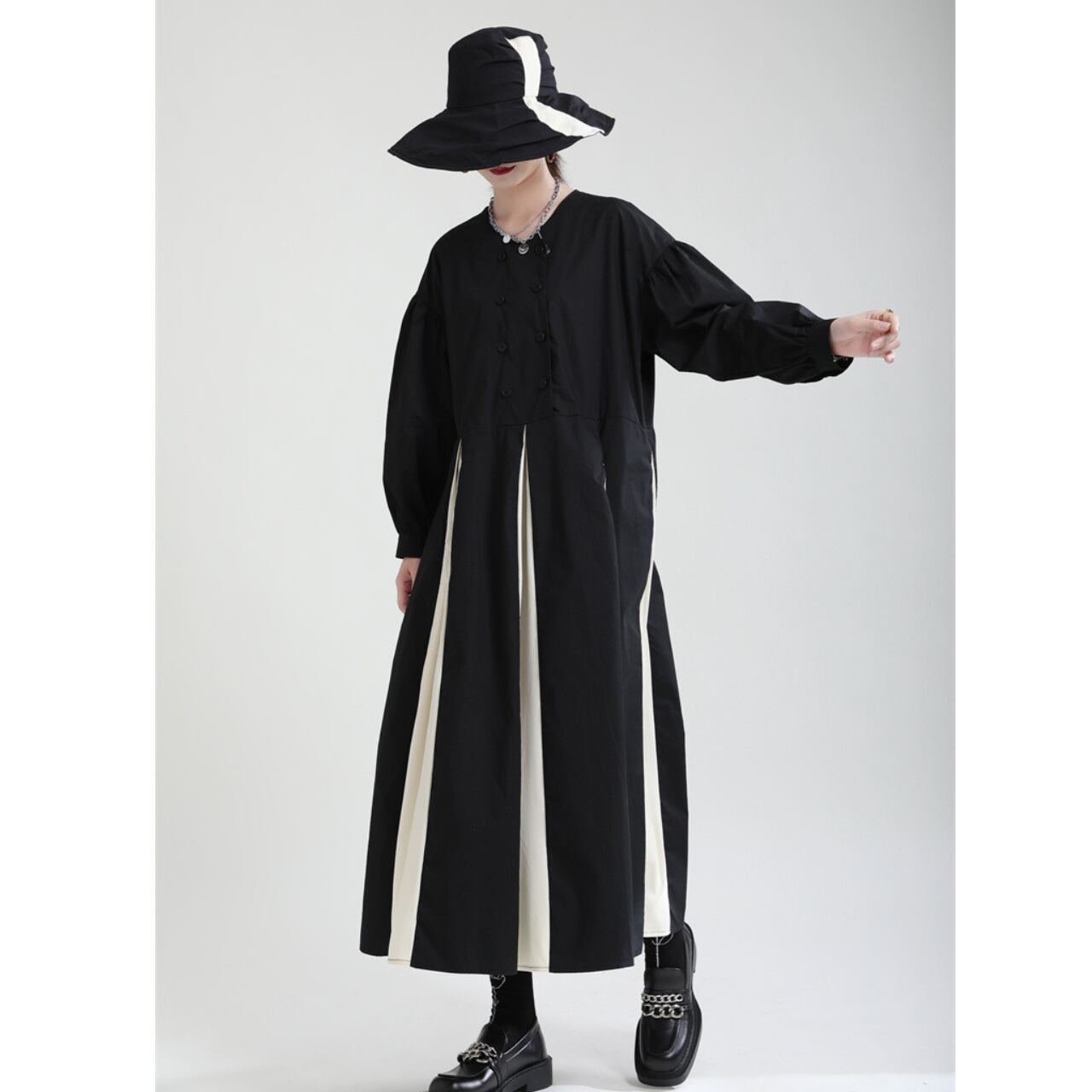 バルーンスリーブロングワンピース A0009
