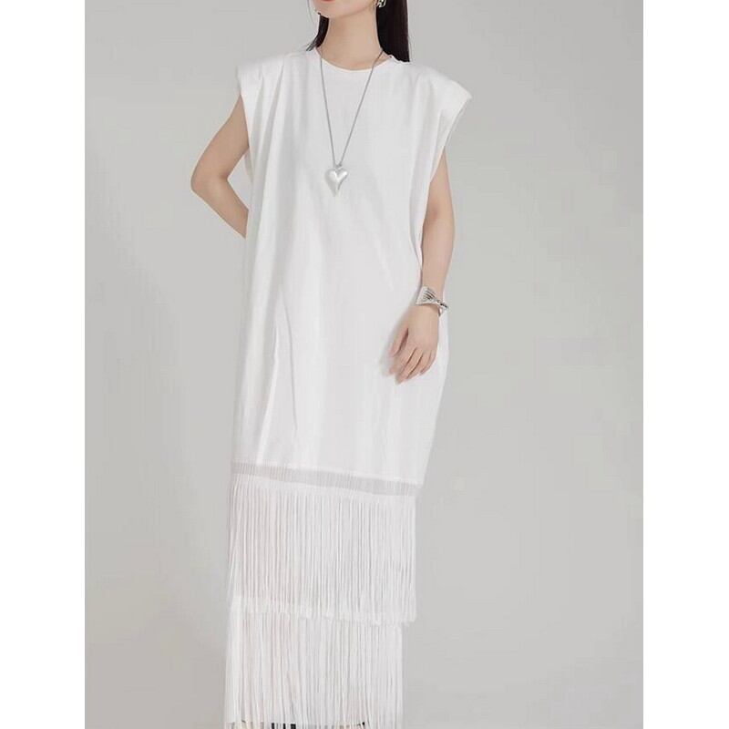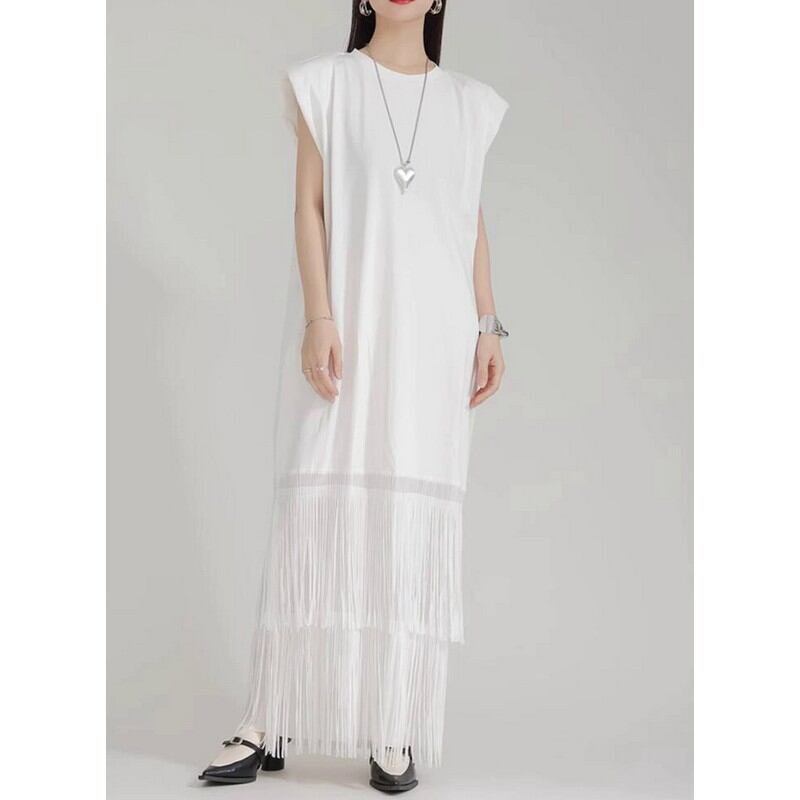フリンジノースリーブロングワンピース A0085