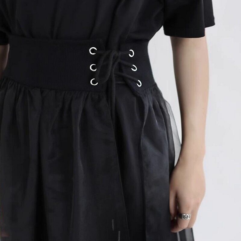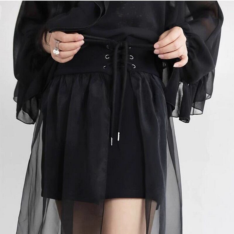 ハイウエストレース×ショートパンツ ツーピースセット A0175