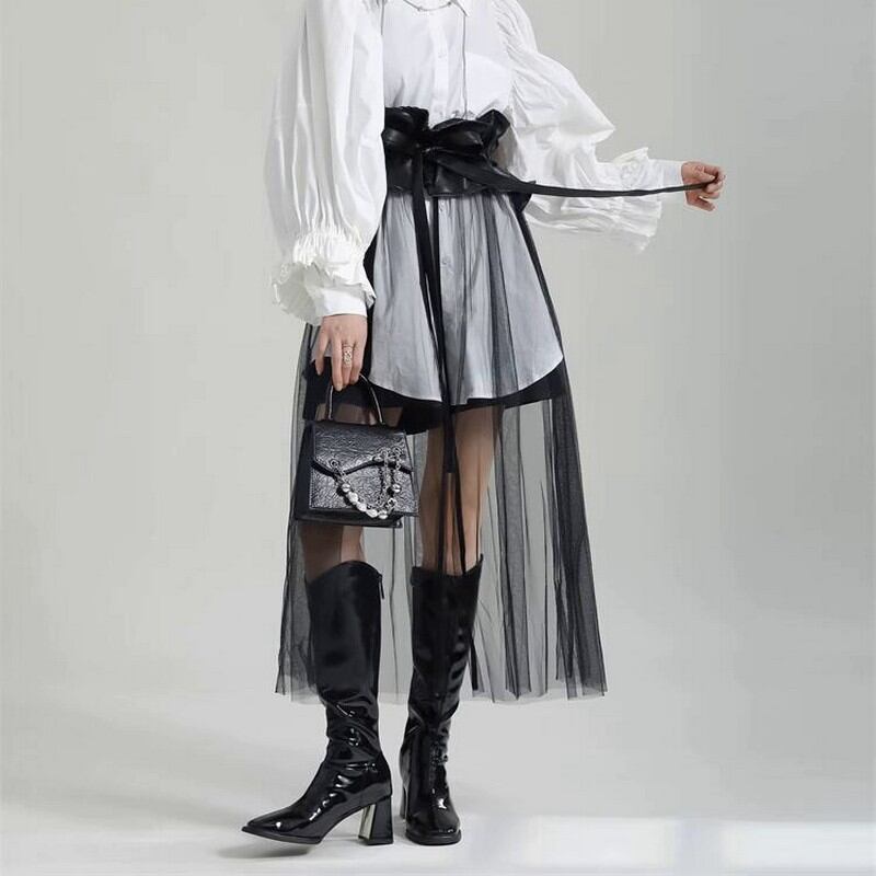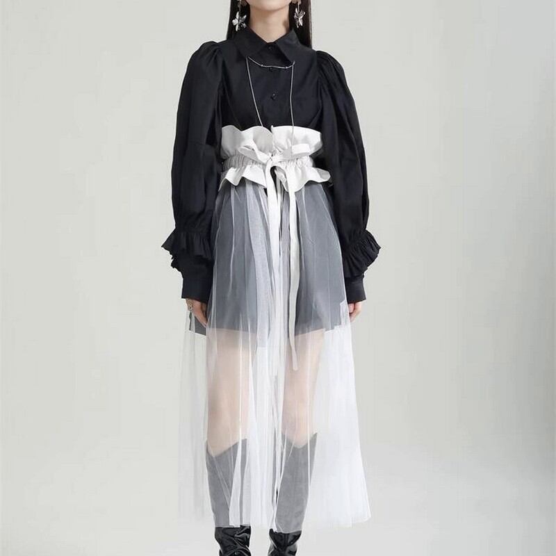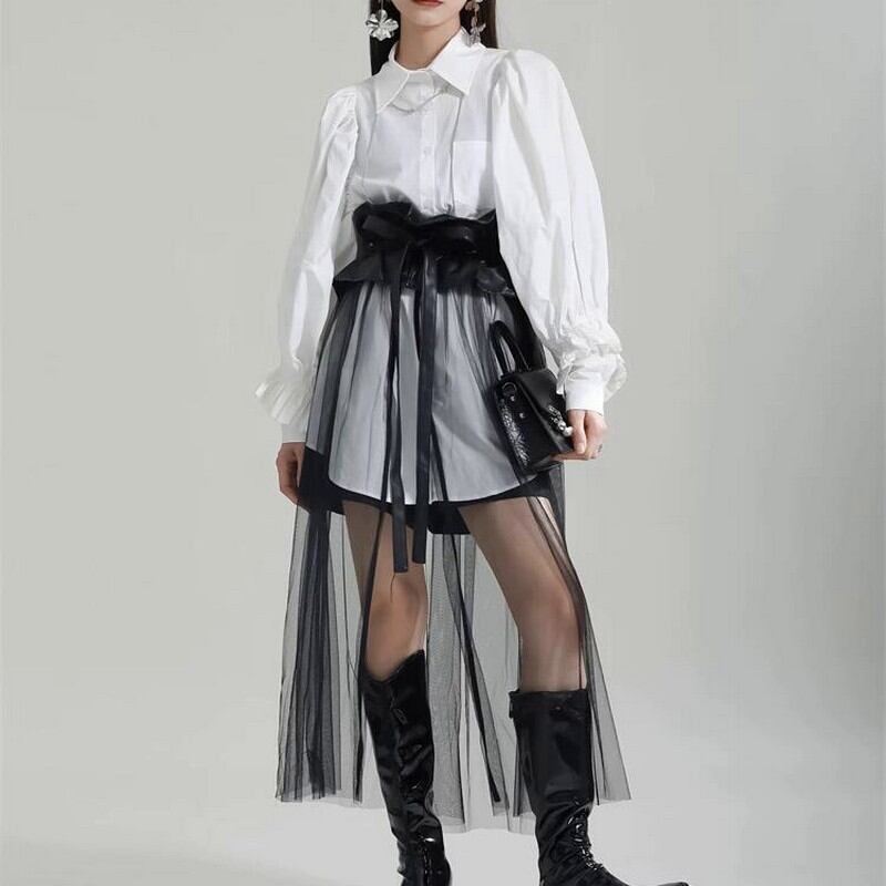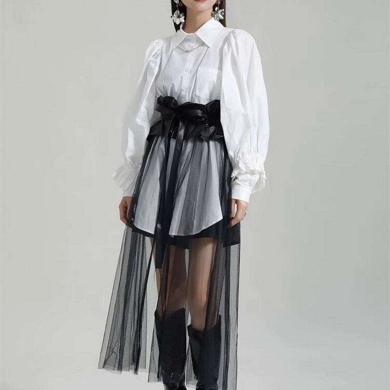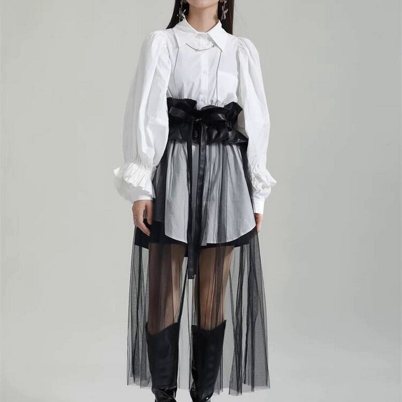 メッシュウエストベルト×Aラインシャツワンピース セットアップ A0148