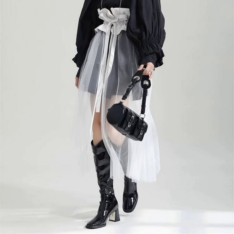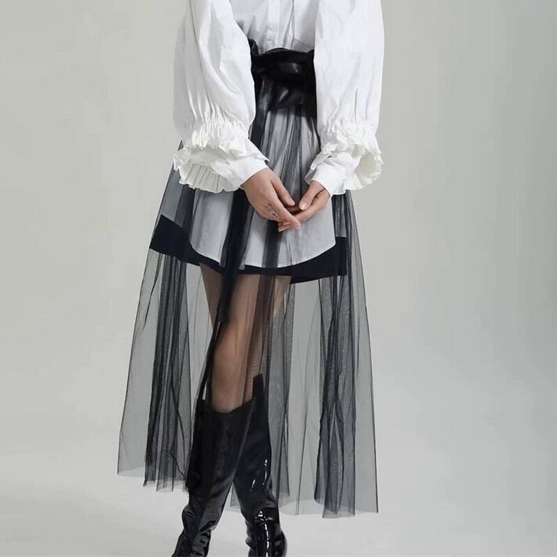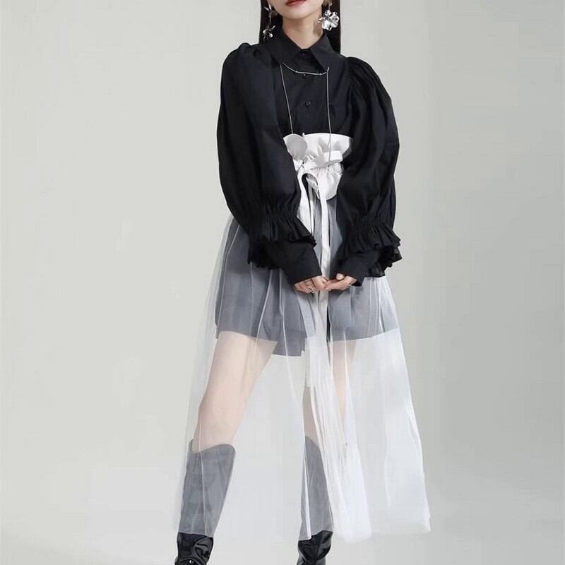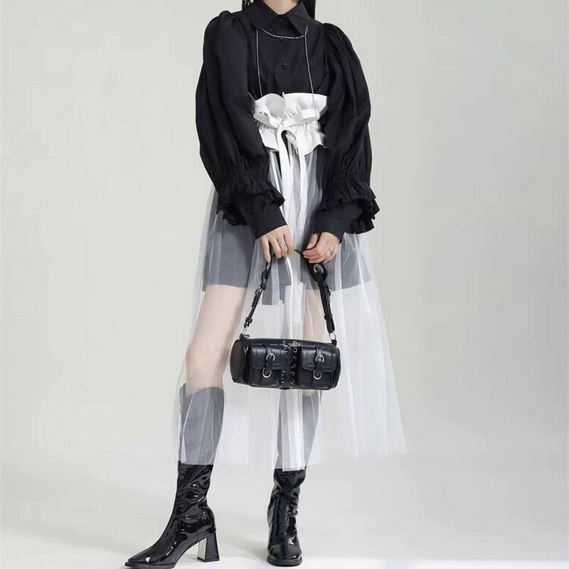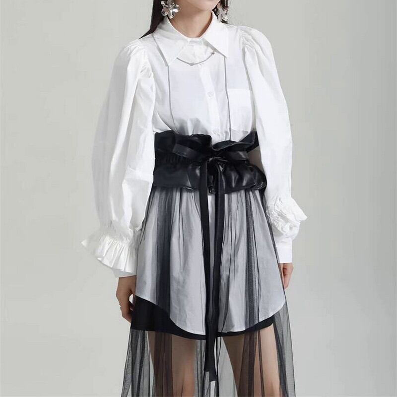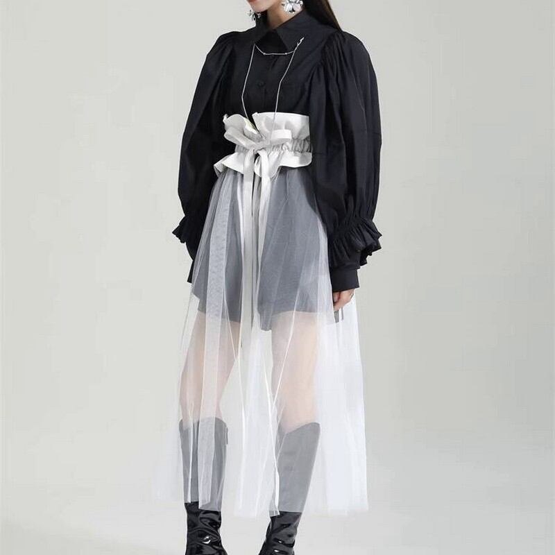 メッシュウエストベルト×Aラインシャツワンピース セットアップ A0148