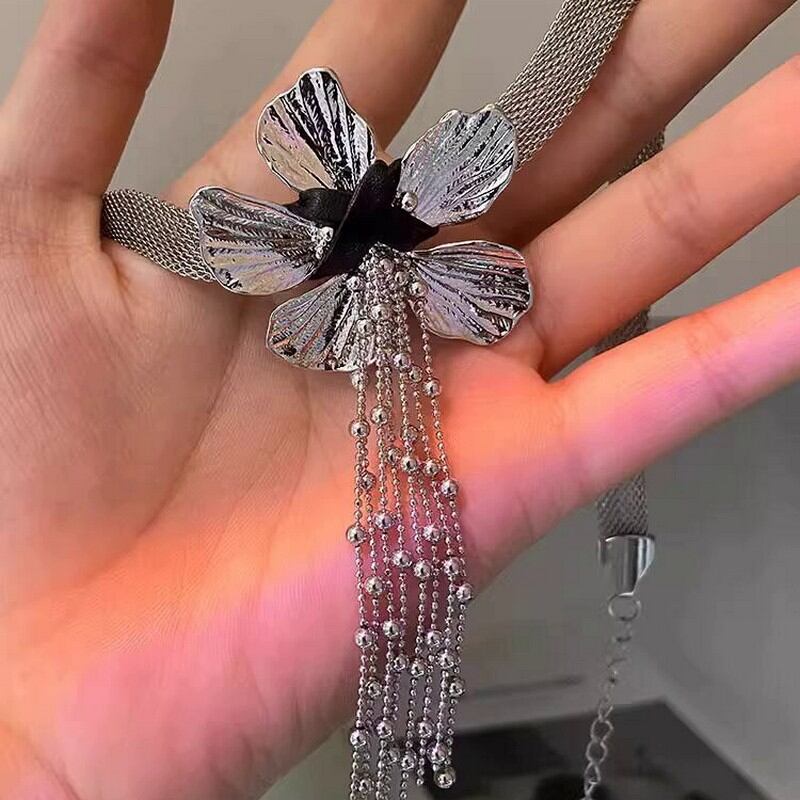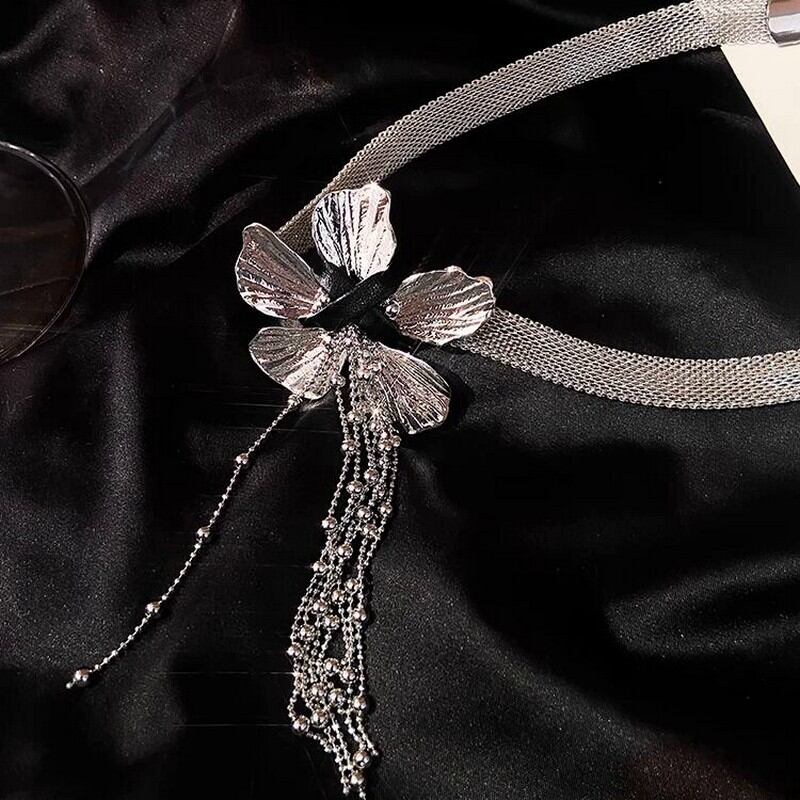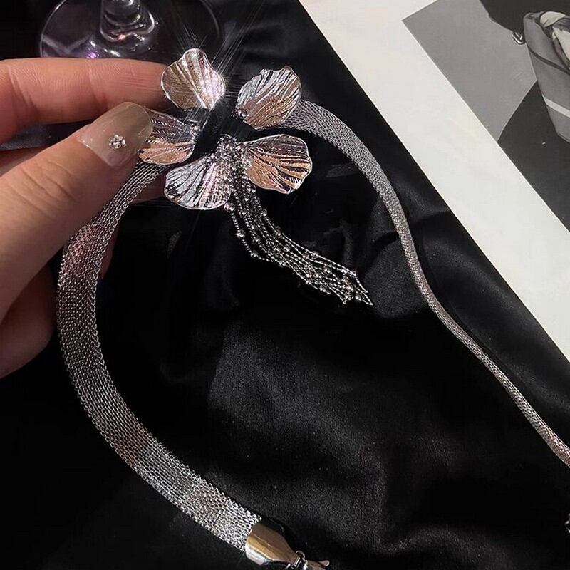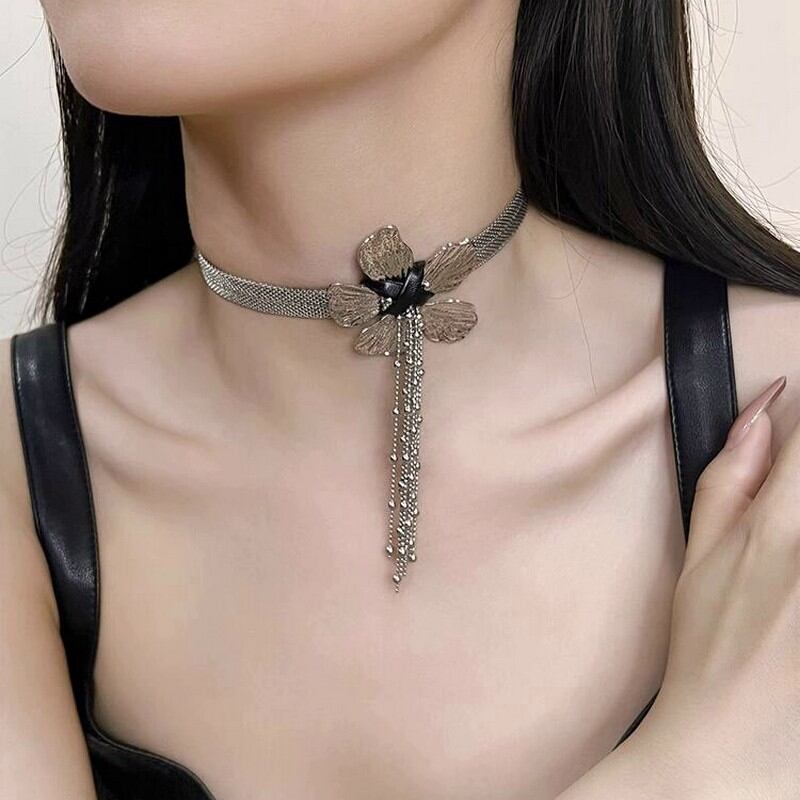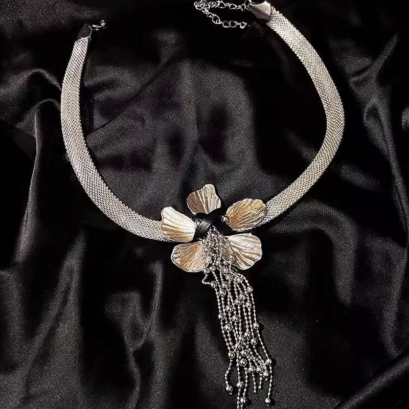メタルフラワータッセルネックレス A0275